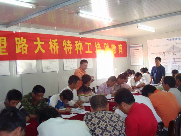 為進一步加大項目部安全生產(chǎn)培訓(xùn)教育力度,切實提高特種作業(yè)人員的安全素質(zhì)和安全操作技能水平,確保在崗特種作業(yè)人員100%持證上崗。淠望路大橋項目部在公司人力資源部的指導(dǎo)和幫助下,以“安全生產(chǎn)月活動”為契機,于6月3日至4日,組織了一期特種作業(yè)人員上崗培訓(xùn)和復(fù)審培訓(xùn)再教育活動。邀請了省安監(jiān)局特種作業(yè)培訓(xùn)中心的老師直接來到一線,對項目部及各下屬作業(yè)隊的電工、焊工、起重工等特種作業(yè)人員進行安全技術(shù)培訓(xùn),培訓(xùn)的主要內(nèi)容有特種作業(yè)人員安全生產(chǎn)法律法規(guī)知識、安全生產(chǎn)管理知識、安全技術(shù)理論知識等。